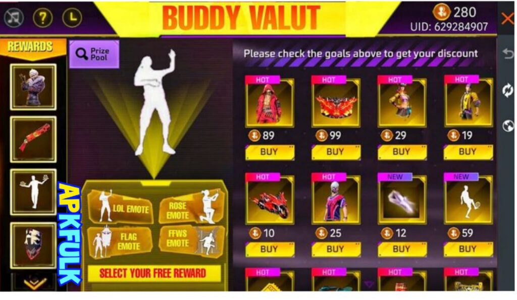 - Select the features and use them with your Free Fire account.