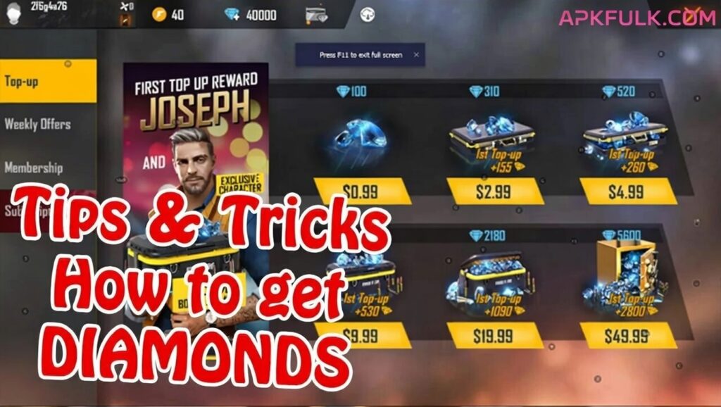 This feature is very important to have in the game. It allows you to unlock and use paid items. OkuTropa is giving you a free diamond option as a gift.