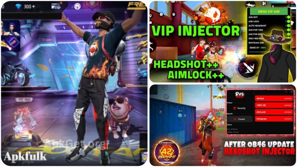 It provides features like free skins, weapon skins, characters, emotes, themes, hologram effects, auto aim, auto headshot, zero recoil, high jump and unlimited diamonds.