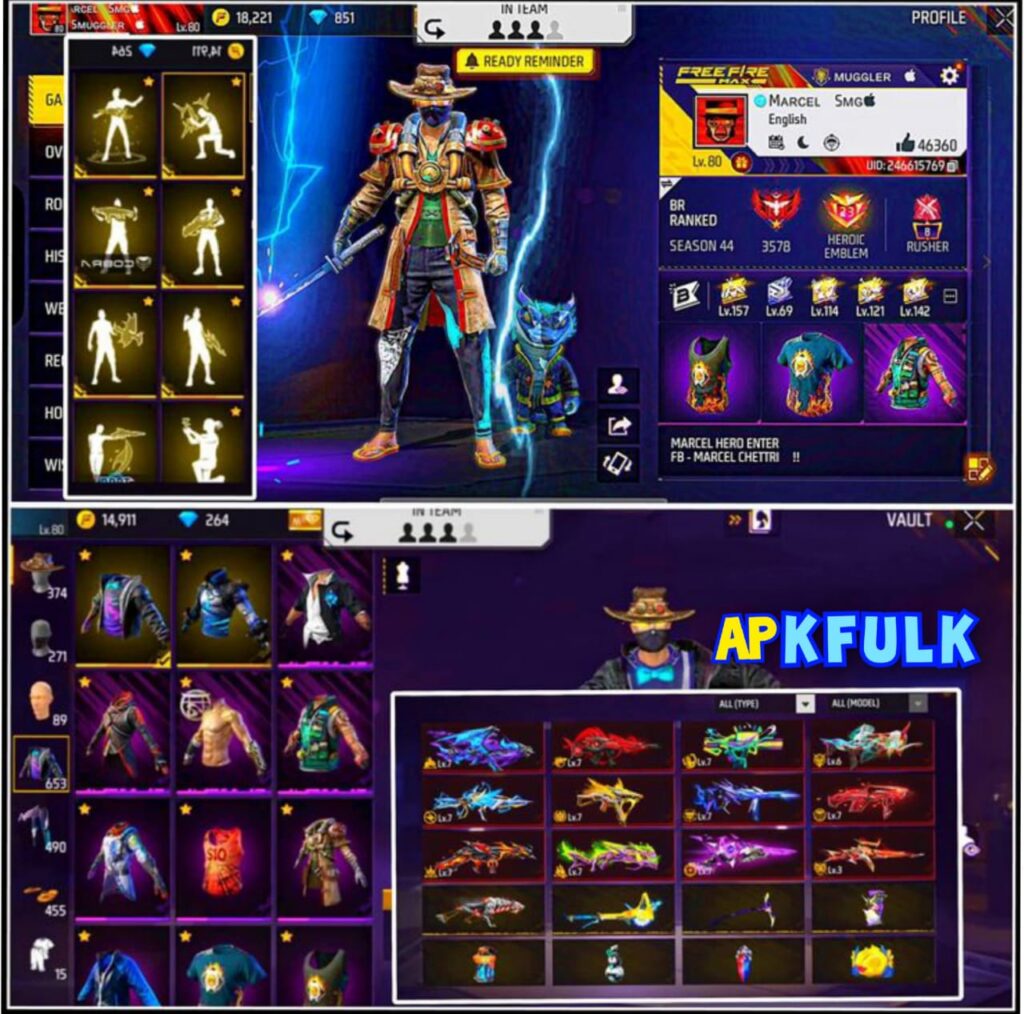 It provides features like free skins, weapons, characters, emotes, themes, backpacks, heroes, unlimited diamonds, auto aim, auto headshot, zero recoil and high jump.